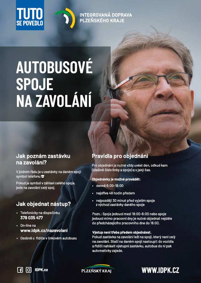 Informujeme Vás o novince - spoje na zavolání (resp. zastávky na zavolání), které budou na jízdních řádech v rámci celého kraje na vybraných spojích od 14. června 2020 se spuštěním nového dopravce.