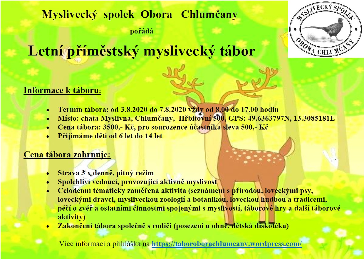 Myslivecký spolek Obora Chlumčany zve děti na letní příměstský myslivecký tábor