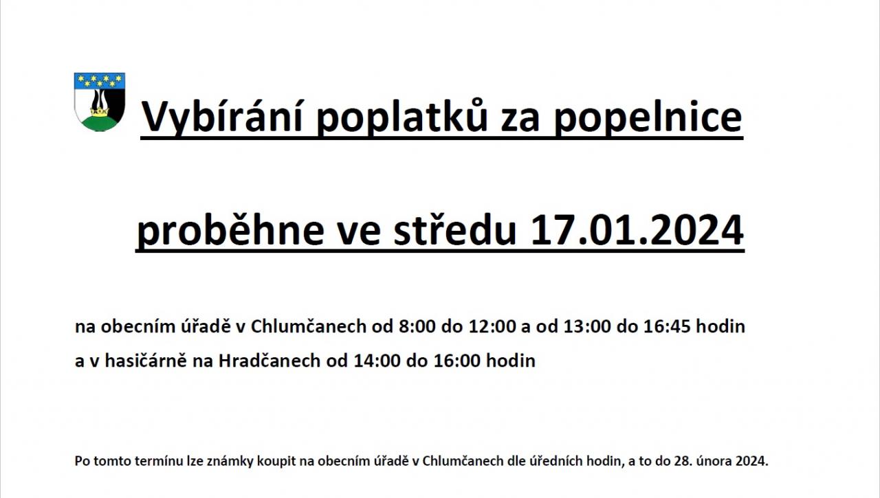 Vybírání poplatků za odpady v roce 2024 - středa 17.1.2024.