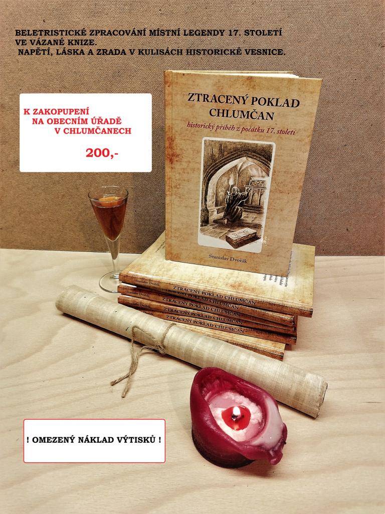 Ztracený poklad Chlumčan - historický příběh z počátku 17. století. K zakoupení na OÚ v Chlumčanech. Cena 200 Kč.